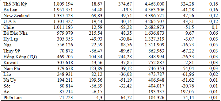 (Tính toán từ số liệu công bố ngày 14/4/2023 của TCHQ)