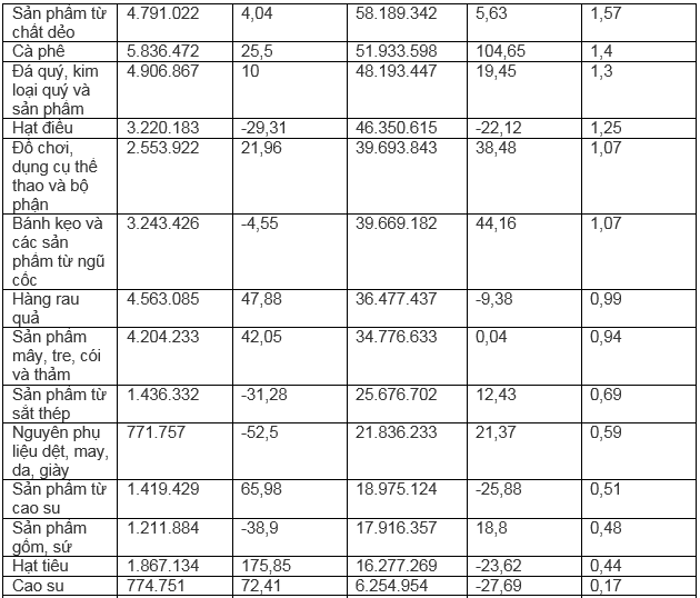 (Tính toán số liệu công bố ngày 10/1 của TCHQ)