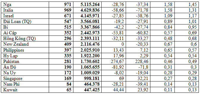 Đáng chú ý, xuất khẩu hạt điều sang thị trường U.AE tăng rất mạnh 177% về lượng và tăng 168,6% về kim ngạch so với cùng kỳ năm trước, đạt 2.810 tấn, tương đương 16,36 triệu USD, chiếm gần 5% trong tổng lượng và tổng kim ngạch xuất khẩu hạt điều của cả nước.