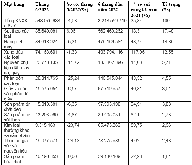 Số liệu xuất khẩu sang Campuchia 6 tháng năm 2022