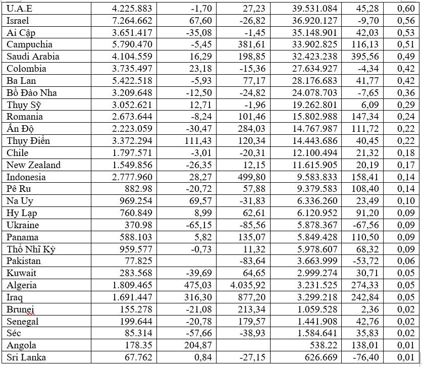 (Tính toán theo số liệu công bố ngày 10/8/2022 của TCHQ)