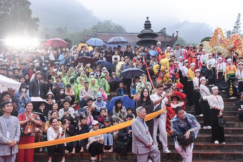 Nằm trong số những người lần đầu tiên tham gia phục vụ biểu diễn tại lễ khai mạc, chị Quách Thị Son, dân tộc Mường, thuộc đội cồng chiêng thôn Gốc Bảng, xã An Phú, huyện Mỹ Đức, chia sẻ, lễ hội diễn ra trang nghiêm, nhẹ nhàng nên dù trời mưa nhưng các phật tử và du khách vẫn rất hoan hỉ.