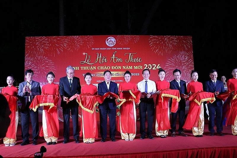 | Cắt băng khai mạc Lễ hội Ẩm thực Ninh Thuận chào năm mới 2024. |