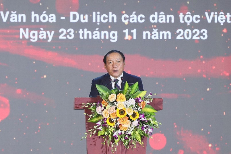 | Ông Nguyễn Văn Hùng - Bộ trưởng Bộ Văn hoá, Thể thao và Du lịch phát biểu khai mạc Tuần “Đại đoàn kết các dân tộc - Di sản Văn hóa Việt Nam” năm 2023 |