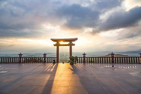 Cánh cổng phảng phất nét kỳ bí nổi bật giữa khung cảnh thiên nhiên hùng vĩ càng làm cảnh sắc nơi đây thêm phần lung linh. Đứng ở cổng, hãy phóng tầm mắt ra xa để thấy bốn phía đều huyền diệu, mờ ảo, đẹp như tranh vẽ.