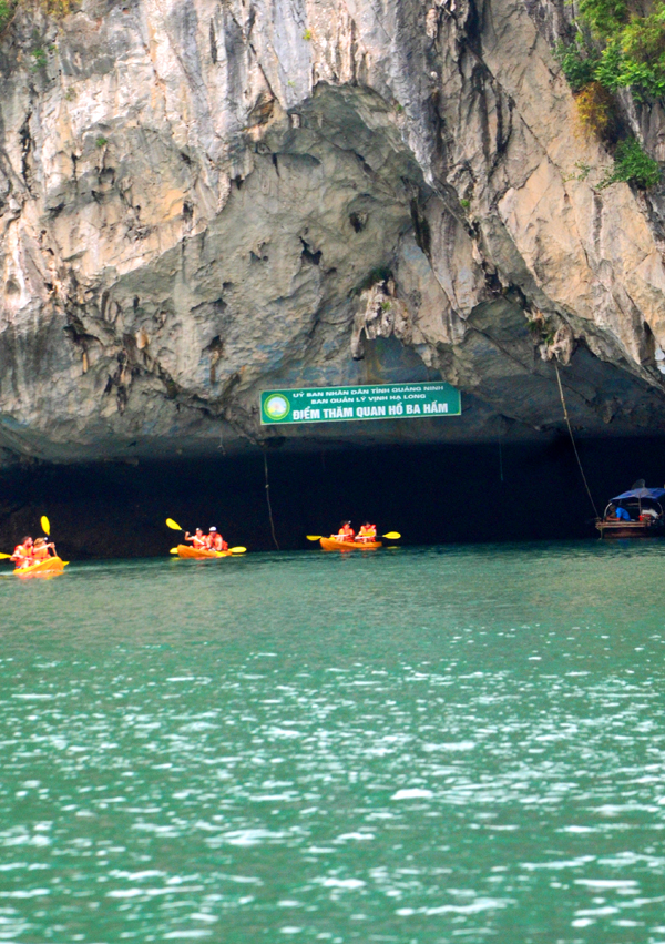 Trong hồ Ba Hầm, bốn bề vách núi vây quanh, không gian hoàn toàn tĩnh lặng, Qua các hang mờ mờ tối, từng chùm nhũ đá rủ xuống với nhiều hình thù kỳ, du khách được thả hồn vào thiên nhiên thơ mộng, ngắm nhìn cây cối xanh tươi vươn cành từ những khe hốc đá trổ trổ bông, đua sắc thắm.