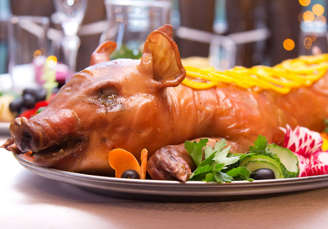Lợn sữa quay: Những chú lợn rừng được người dân nuôi dưỡng nên thịt cực kì giòn và dai. Khi quay lợn, người dân tẩm ướp gia vị hài hòa, làm nên món lợn sữa quay với hương vị rất thơm và béo ngậy.