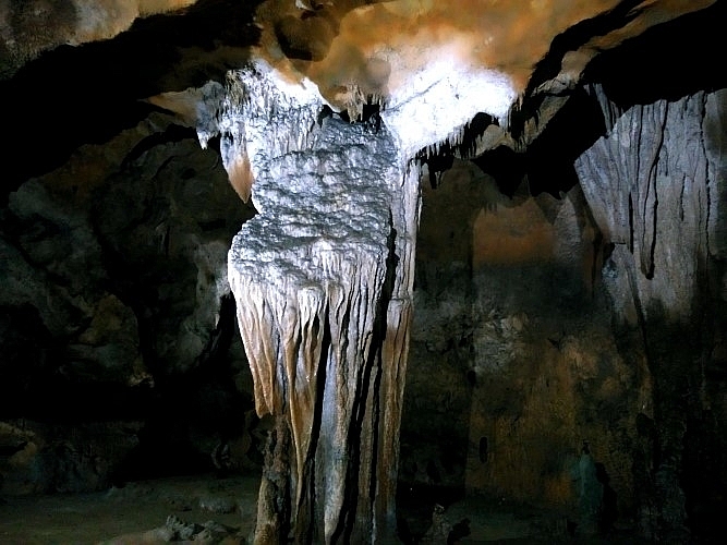 Đặc biệt bên trong hang này còn có 2 cột thạch nhủ khổng lồ với đường kính khoảng 2m vươn lên cao, tất cả đã tạo nên một bức tranh thiên nhiên đầy màu sắc bên trong hang động này.