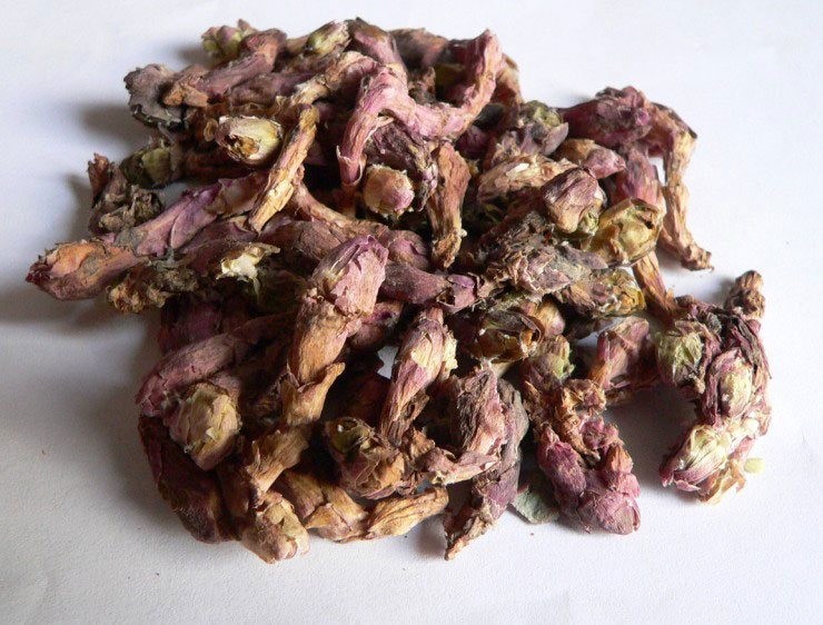 | Dược liệu có dạng búp nhỏ (0,5–2,5 cm), màu vàng sẫm, mùi thơm nhẹ, vị cay đắng đặc trưng. |