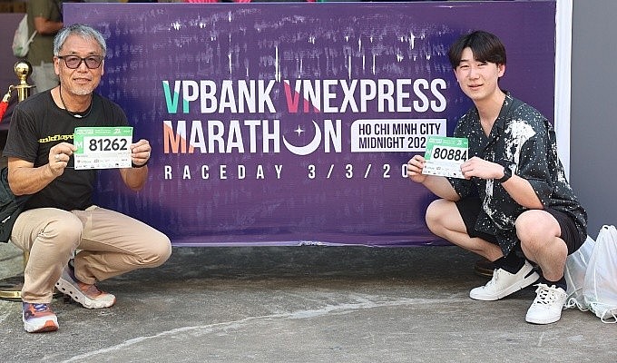 Ông Kiyohiko Mizuno (65 tuổi) rủ con trai 21 tuổi bay từ Nhật sang Việt Nam để tham dự giải chạy đêm TP.HCM mùa thứ hai. Hai bố con đăng ký cự ly 21km, không đặt nặng thành tích, thay vào đó muốn tận hưởng cung đường hiện đại sôi động lúc về đêm. “Hy vọng hai bố con có nhiều kỷ niệm đẹp trong cuộc đua này", ông Kiyohiko Mizuno bày tỏ.
