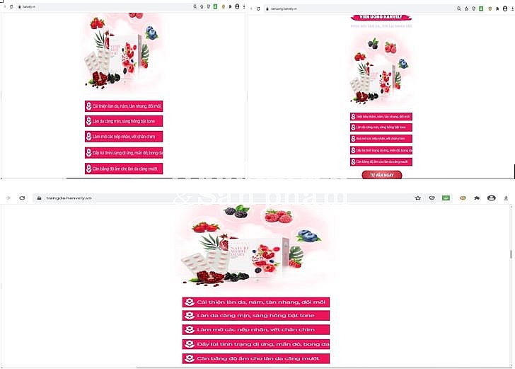 Bên cạnh đó, các trang website trên đều thể hiện và có dấu hiệu vi phạm quảng cáo như: “Viên uống trắng da nhập khẩu Hàn Quốc Hanvely quét sạch nám sâu, sáng hồng rạng rỡ; uống ngày 1 viên không phải đến spa để trị nám, sau 20 ngày sử dụng sẽ tái tạo da, hết nám, sạch tàn nhang, đồi mồi da bật từ 2 đến 3 tông, giúp da chống nắng hiệu quả…