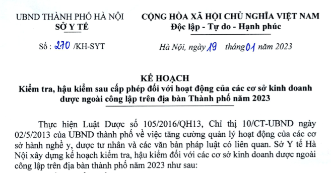 Mới đây, Sở Y tế Hà Nội đã xây dựng kế hoạch kiểm tra, hậu kiểm đối với 200 cơ sở kinh doanh dược ngoài công lập trên địa bàn thành phố trong năm 2023.