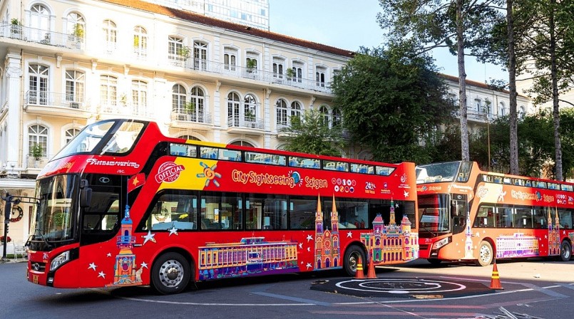 | Tuyến buýt mui trần Hop on - Hop off là một sản phẩm du lịch thu hút khách tham quan TP.HCM. |