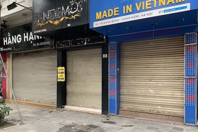 Kể từ khi xuất hiện bệnh nhân thứ 17 bị mắc bệnh Covid-19, hàng loạt cửa hàng trên các tuyến phố cổ Hà Nội đóng cửa. Đây là những con đường có tiếng ở Hà Nội quy tụ hàng loạt thương hiệu thời trang, các cửa hàng bán đồ lưu niệm, kể cả những hàng ẩm thực nổi tiếng và giá thuê mặt bằng không thua các trung tâm thương mại ở Hà Nội.