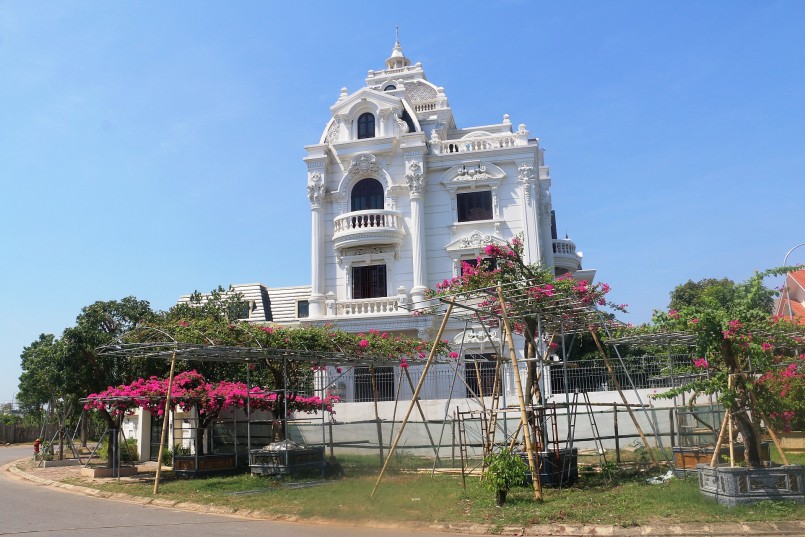 | Ngoài tạo phong cảnh, hoa giấy còn tạo bóng mát tại khu trung tâm thương mại kết hợp chợ truyền thống của gia đình anh Trường tại TP.Sầm Sơn. |