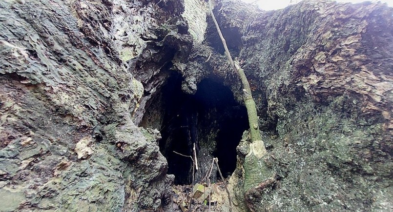 | Suốt chiều dài thân cây đều bị rỗng ruột tạo nên "hang động" kỳ lạ bên trong lớp vỏ xù xì. |