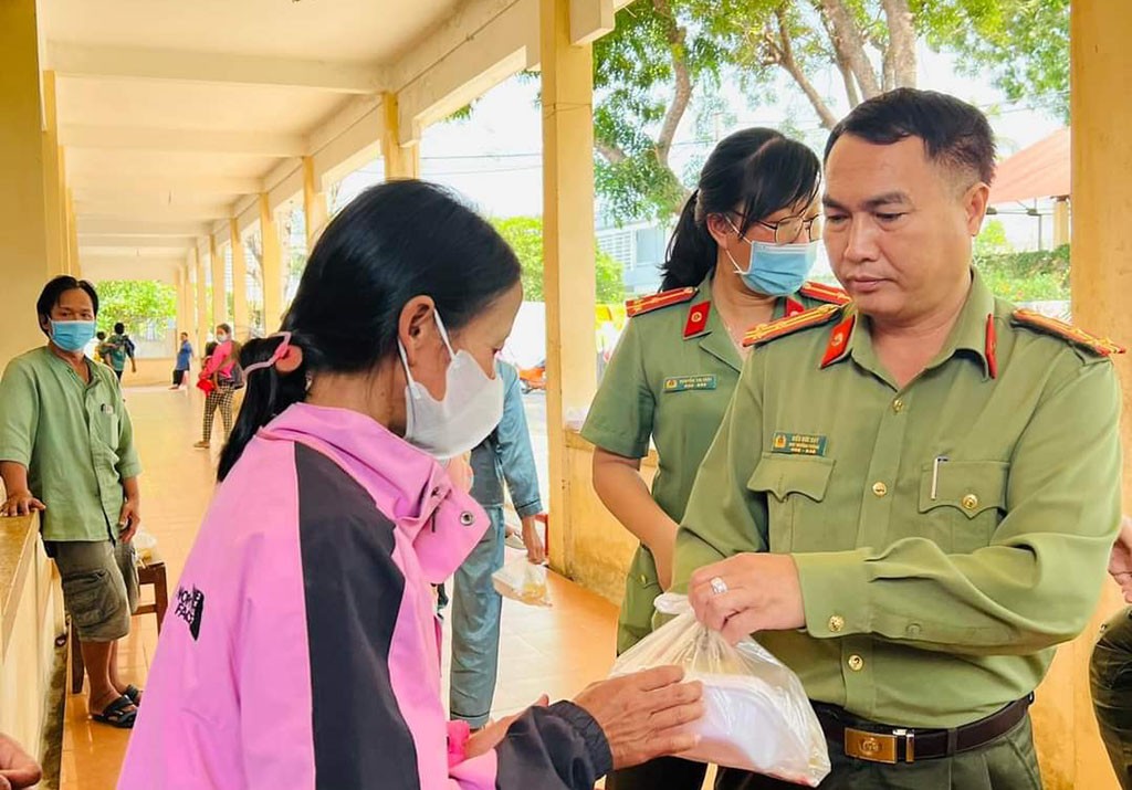 | Cán bộ chiến sĩ Phòng An ninh chính trị nội bộ - Công an tỉnh Kon Tum trao những suất cơm đầy ý nghĩa cho bệnh nhân. |