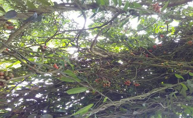 | Quả máu mọc thành chùm, bám lên các cây to. |