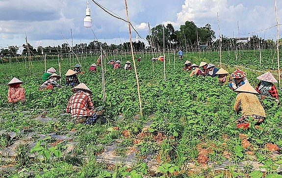 | Trang trại trồng tía tô xuất khẩu đang tạo việc làm cho lao động địa phương. |