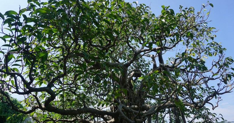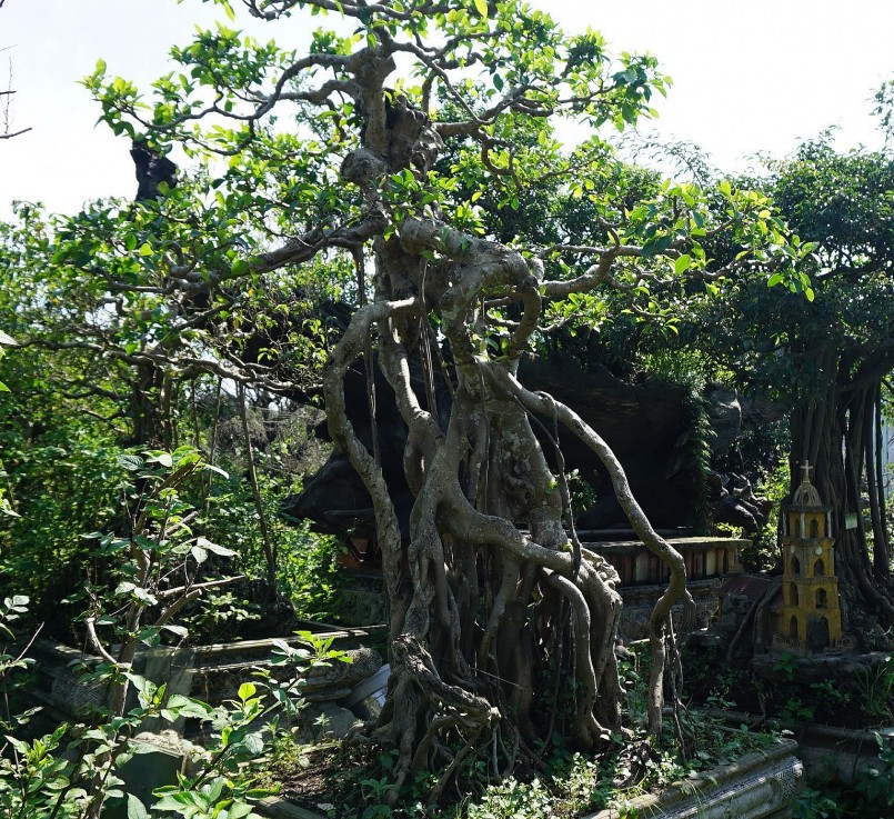 | Một gốc sanh cổ thụ khác trong khu vườn. Thiếu vắng sự chăm chút hàng ngày, cây si phát triển tự nhiên và không theo bất cứ hình dáng nào. |
