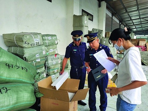 | Hải quan tỉnh Lạng Sơn tiến hành kiểm tra hàng hoá. |