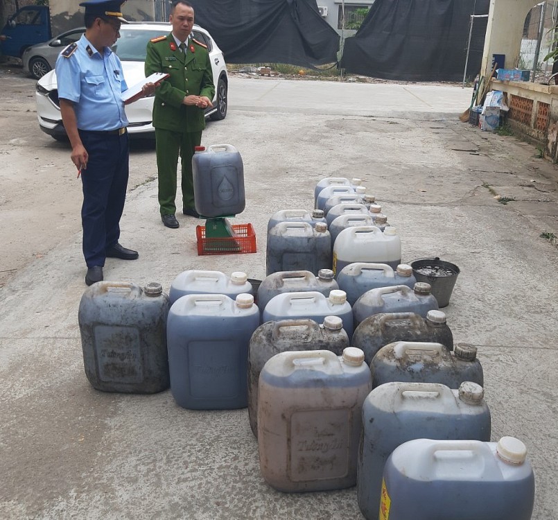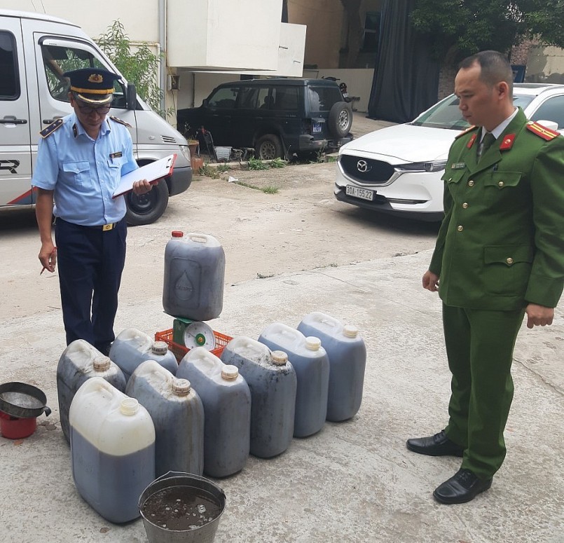 Tại thời điểm kiểm tra, phát hiện trên xe đang vận chuyển 550 kg mỡ động vật đã qua sử dụng được chứa đựng trong 22 chiếc can nhựa cũ, cáu bẩn, không có nhãn mác hàng hóa, không có chữ viết, hạn sử dụng hay nội dung thông tin khác liên quan, hàng hóa không có hóa đơn chứng từ theo quy định.