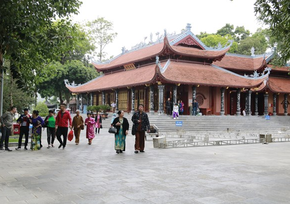 | Du khách thập phương về lễ Mẫu tại đền Đông Cuông. |