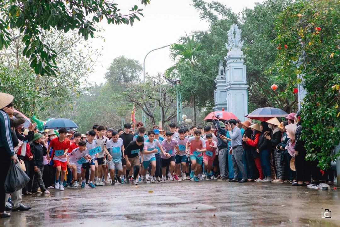 | Các thí sinh hào hứng tham gia giải chạy việt dã tại lễ hội. |