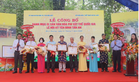 Như vậy, tính đến nay, tỉnh Bình Dương có 4 Di sản Văn hóa phi vật thể quốc gia gồm"Nghề sơn mài Tương Bình Hiệp," "Nghề gốm Bình Dương," "Võ lâm Tân Khánh Bà Trà" và "Lễ hội Kỳ yên đình Tân An."