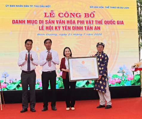 Sáng 21/7, Sở Văn hóa, Thể thao và Du lịch (VHTT&DL) tỉnh Bình Dương phối hợp với UBND TP. Thủ Dầu Một tổ chức công bố "Lễ hội Kỳ yên đình Tân An" ra đời cách đây 200 năm được Bộ VHTT&DL công nhận là Di sản Văn hóa phi vật thể quốc gia.