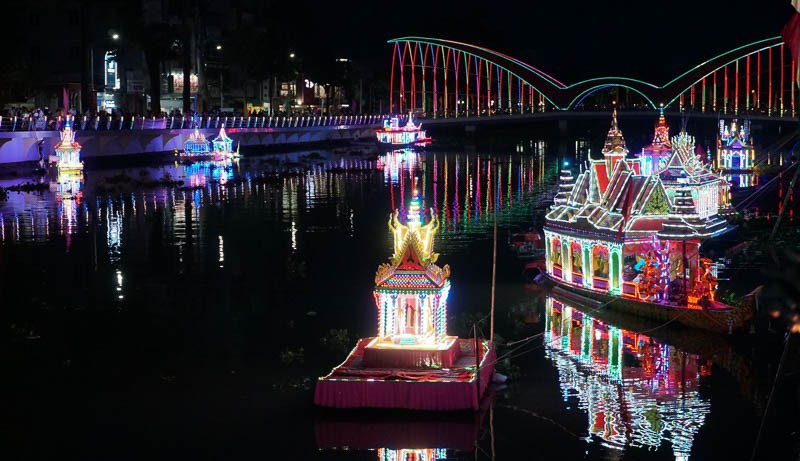 | Nghi thức thả hoa đăng, diễu hành quanh Ao Bà Om và lễ thả đèn nước Lôi Prôtip trên sông Maspero |