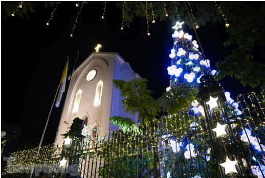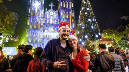 Nhắc đến Giáng sinh Hà Nội, Nhà Thờ Lớn luôn là cái tên đầu tiên xuất hiện trong tâm trí mỗi người. Với kiến trúc Gothic cổ kính vốn đã mang đậm hơi thở châu Âu, nơi đây trở nên lộng lẫy hơn bao giờ hết khi những dải đèn LED chạy dọc theo các tháp nhọn và cây thông khổng lồ được dựng lên giữa quảng trường. Ánh sáng rực rỡ tương phản với nét trầm mặc của những bức tường vôi xám tạo nên một phông nền "sống ảo" không thể hoàn hảo hơn, thu hút hàng nghìn lượt khách đổ về mỗi tối để tận hưởng không khí lễ hội.