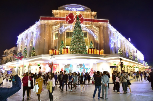 Nằm tại vị trí "trái tim" của thành phố, Tràng Tiền Plaza luôn khẳng định vị thế của mình bằng những phong cách trang trí đẳng cấp và thời thượng nhất. Mỗi năm, mặt tiền của trung tâm thương mại này lại được biến hóa theo một chủ đề khác nhau, từ những hộp quà khổng lồ đến những lâu đài ánh sáng rực rỡ. Sự kết hợp giữa kiến trúc Pháp cổ điển và hệ thống chiếu sáng hiện đại mang đến một vẻ đẹp quý phái, biến nơi đây thành điểm dừng chân yêu thích của những tín đồ thời trang muốn thực hiện các bộ ảnh sang chảnh.