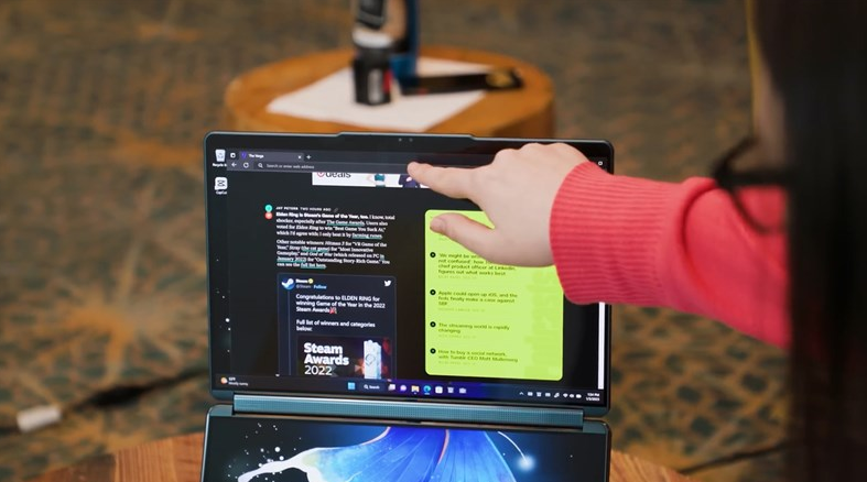 Tại triển lãm công nghệ CES 2023, đã có rất nhiều các hãng laptop công bố những dòng sản phẩm mang tính sáng tạo, đổi mới về cấu hình. Nhưng điều đó hoàn toàn là không có ý nghĩa khi Lenovo vừa mới ra mắt một chiếc laptop được gây chú ý với mẫu Yoga Book 9i, chiếc laptop đầu tiên có hai màn hình OLED 13,3 inch cảm ứng.
