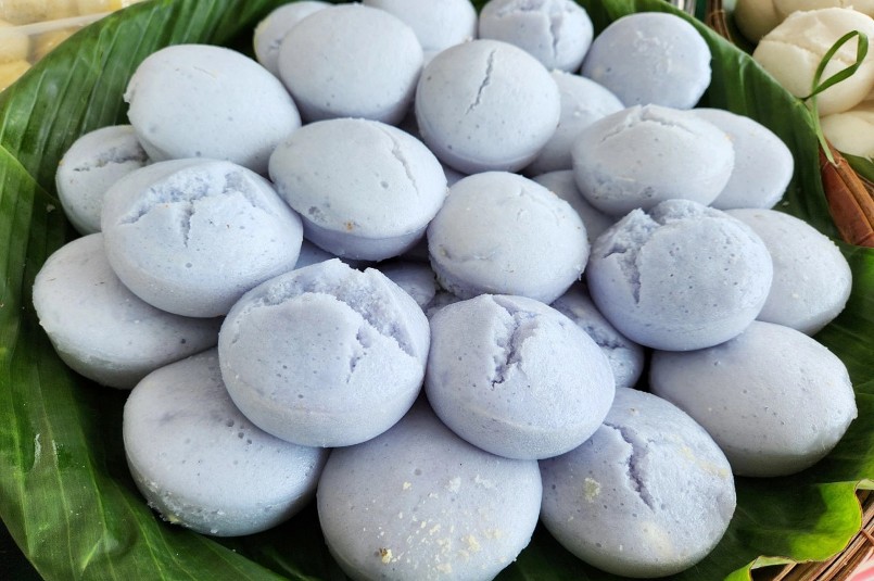 | Nghệ nhân Huỳnh Ngọc Lan, phường 6, TP Sóc Trăng, mang đến liên quan ẩm thực 100 "món quà quê" là 100 loại bánh dân gian. Ngoài bánh bò chế biến bằng đường thốt nốt, lá dứa, còn có bánh bò hoa đậu biếc. |