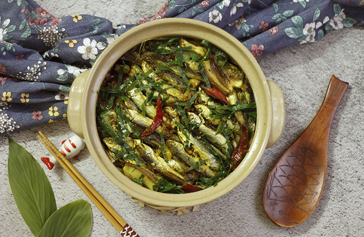 | Khi kho chín, cá còm có màu vàng rất bắt mắt |