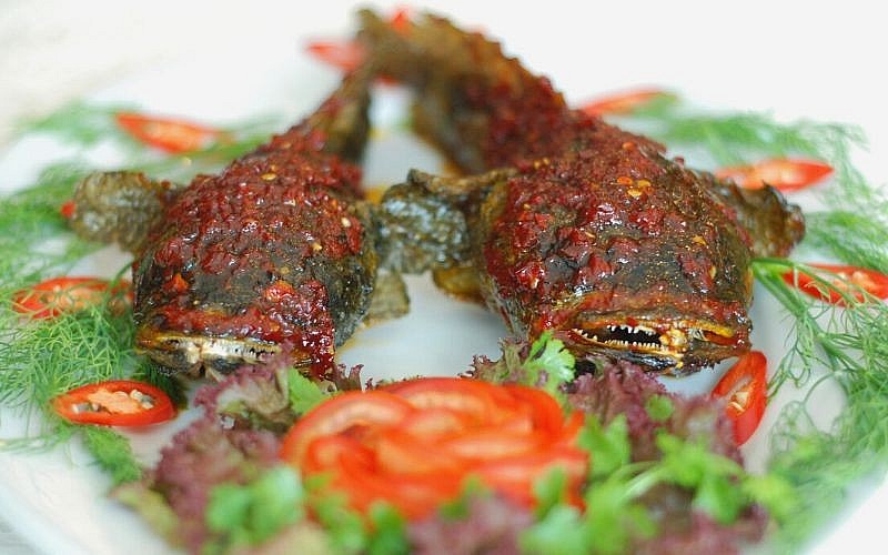 Chỉ từ 3 nguyên liệu chính là cá mao ếch, muối hột và ớt tươi, món cá mao ếch nướng muối ớt này chẳng những giữ nguyên được sự săn chắc từ thịt cá mà các hương vị mặn mà, cay nhẹ tự nhiên khác còn sẽ giúp làm bật lên sự tươi ngọt vốn có của cá mao ếch, giúp bạn chỉ cần ăn thử một lần là nhớ mãi không quên.