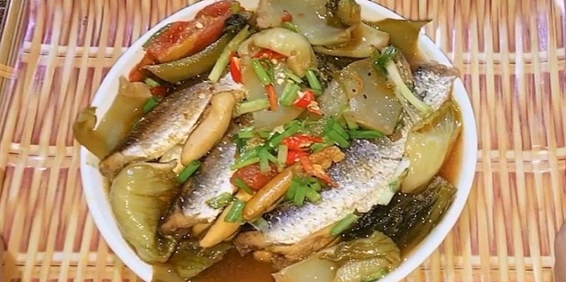 Nguyên liệu: Cá đối tươi, dưa muối, hành tỏi khô, đường, mắm, hạt nêm, tiêu, ớt…