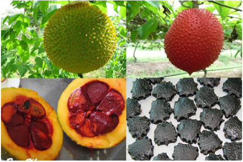 Cơm quả gấc: vị ngọt tính bình. Tác dụng bổ tỳ vị, dưỡng khí huyết, ích can thận, sáng mắt... Trị chứng hư nhược, mắt yếu mắt mờ, phụ nữ có thai, trẻ em còi, chức năng gan yếu.