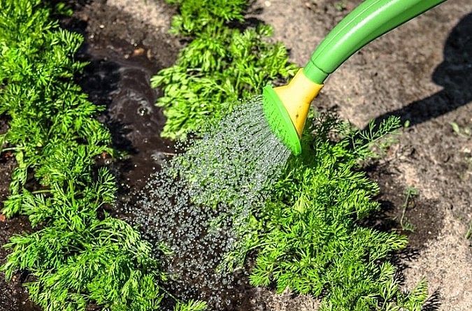 Cà rốt cần khoảng 2.5 cm nước mỗi tuần. Tưới nhỏ giọt hoạt động tốt nhất nhưng tưới nước trên cao vẫn ổn miễn là cây trồng không có cỏ dại.