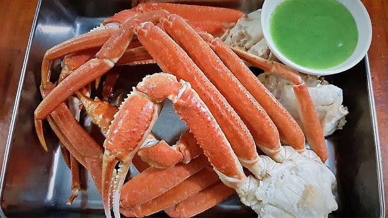 Bên cạnh việc hấp thì cua tuyết luộc cũng ngon không kém, thịt cua được luộc vừa chín tới, vẫn giữ được độ mềm, ngọt, thơm đặc trưng của thịt cua. Bạn có thể chấm thịt cua với các loại nước chấm như: Muối tiêu chanh, sốt bơ tỏi đều ngon.