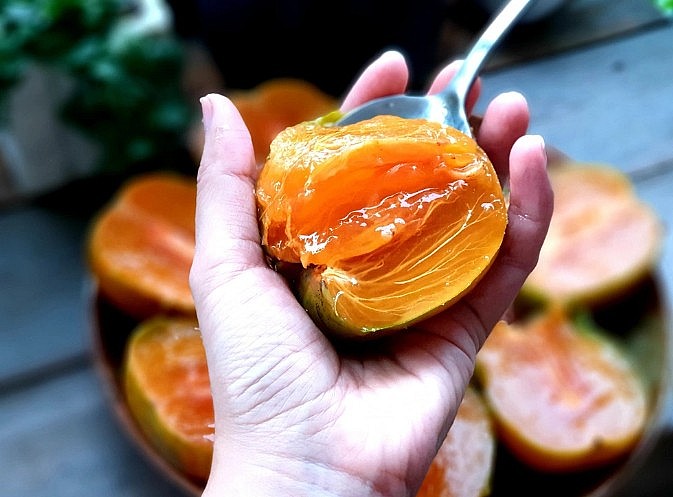 Chị Trần Thu Hằng ở quận Cầu Giấy, Hà Nội năm nào tôi cũng săn lùng để đặt mua hồng da tre Thái Nguyên. Muốn thưởng thức hồng da tre ngon chọn quả thu hái khi đến độ (hồng già), rồi ủ 2-3 ngày để chín tự nhiên. Khi ủ, trái hồng được xếp úp ngược núm quả xuống dưới để nhanh chín. Trong quá trình đó, vỏ quả hồng da tre sẽ chuyển dần sang màu ửng vàng.