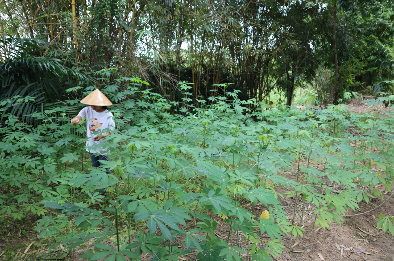 | Lá mì mà người dân Tây Nguyên dùng để chế biến món ăn là mì gòn, thân chỉ cỡ ngón tay, cao không quá đầu người |