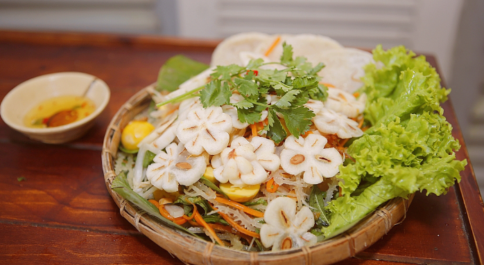 Ruột măng cụt tiếp tục được cắt khoanh tròn, tạo hình bông hoa đẹp mắt rồi ngâm với hỗn hợp giấm đường hoặc chanh để không bị thâm. Khi ăn, người ta mới vớt ra đem trộn với các nguyên liệu và gia vị khác để thưởng thức.