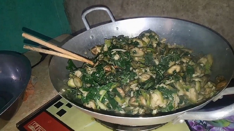 Tiếp theo bạn cho lá lốt vào, thêm 2 muỗng canh nước, đảo đều nhẹ nhàng trên bếp thêm 2 phút thì tắt bếp.