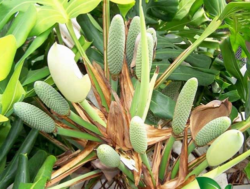 Không phải cứ trồng là loại cây cảnh lá xanh này sẽ ra hoa, kết quả. Chỉ khi sống trong môi trường thích hợp, cây trầu bà lá xẻ mới ra hoa, kết quả được.