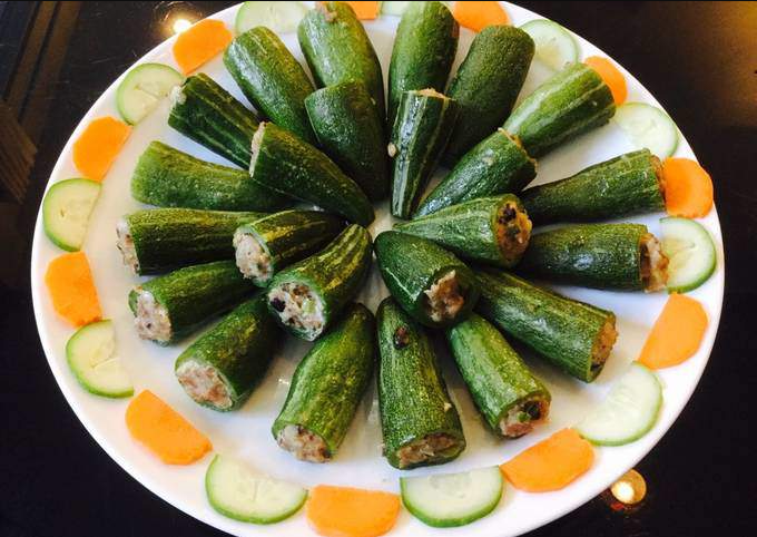 Quả lặc lày được rửa sạch, dùng dao cắt một đầu, moi ruột. Phần nhân có thể trộn thịt, đậu, mộc nhĩ hoặc nấm hương, mùi tàu tất cả đều được xay nhỏ và ướp gia vị, tiêu. Dùng thìa hoặc đũa nhồi hết phần nhân vào quả lặc lày đã bỏ ruột, nếu dùng không hết nhân có thể bỏ vào nồi nước nêm gia vị nấu làm canh.
