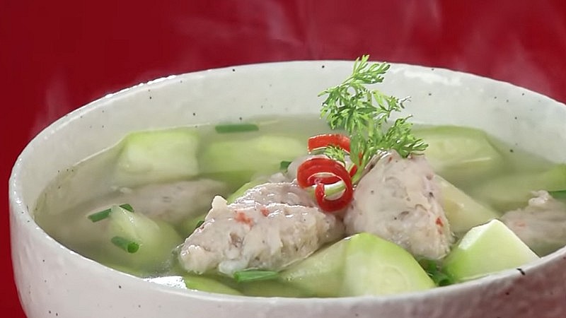 Món canh dưa hường tôm viên có màu xanh tự nhiên bắt mắt của dưa hường, vị ngọt thanh mát từ dưa và tôm hòa quyện, thơm mùi tiêu vô cùng hấp dẫn.