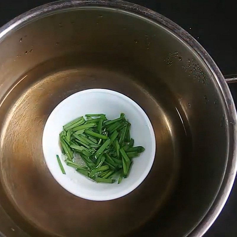 Bạn đặt chén hẹ vào nồi nước với mực nước cao từ 1/3 - 1/2 chén.