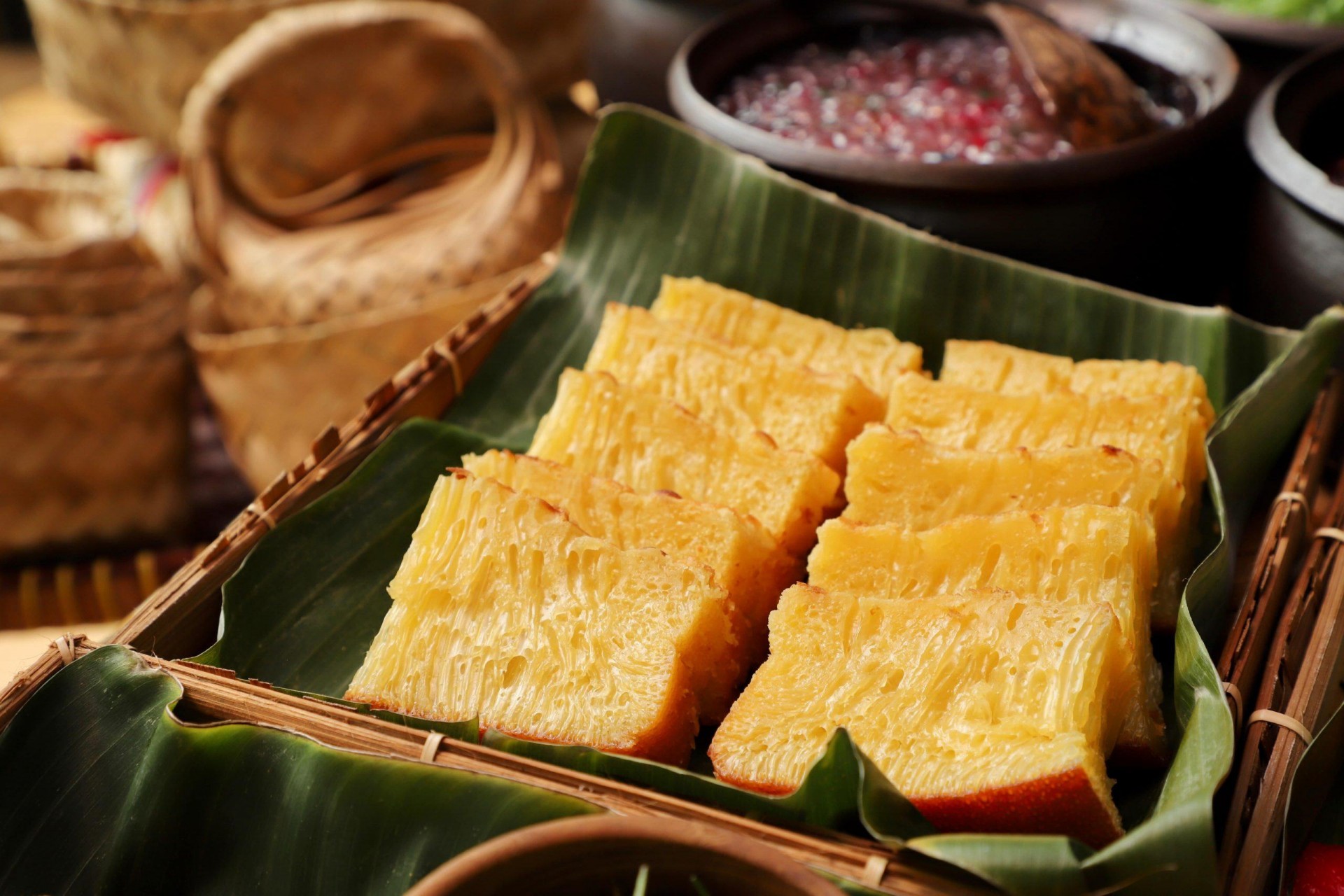 Bạn quan sát thấy bánh nở bung hoặc lấy tăm xiên không thấy bột dính vào tăm là bánh đã chín.